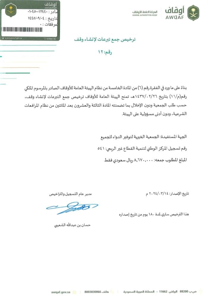 الوقف صدقة جارية، تضمن استدامة العطاء للمحتاجين، واستمرارية الأجر للمتصدقين .سـهـم الفـرد = 50 ريالسهم الوالدين = 150 ريال ســـهم العائلة = 500 ر...